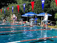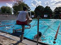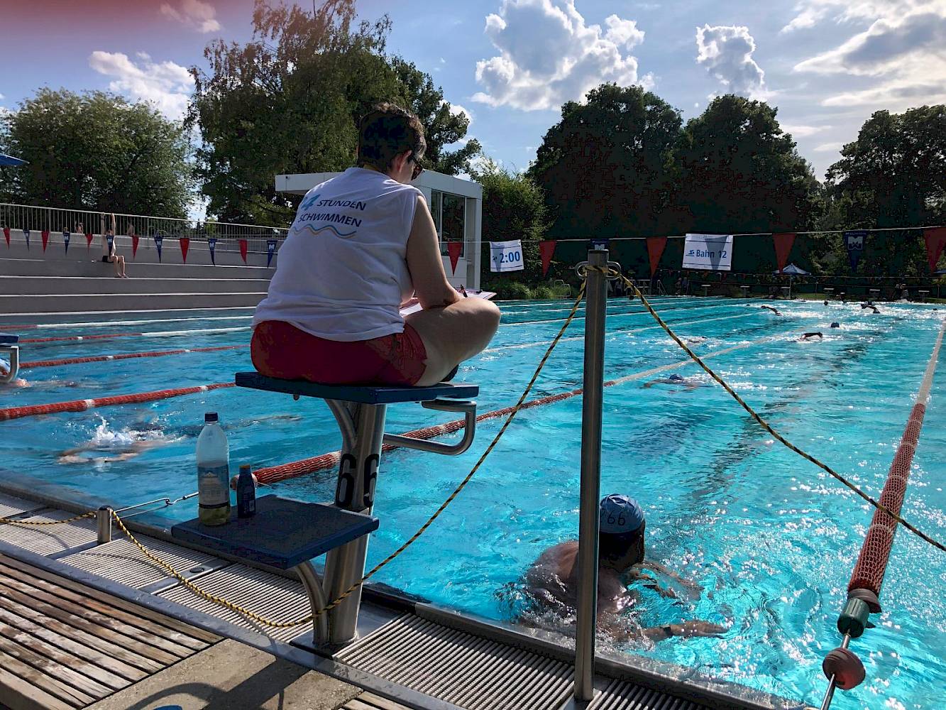 Beim 24h-Schwimmen ging es nicht darum, nonstop im Wasser zu bleiben, sondern über 24 Stunden hinweg in beliebig vielen Einheiten möglichst viele Kilometer im Becken zurückzulegen. Die ambitioniertesten Teilnehmer*innen waren dabei fast rund um die Uhr im Wasser, andere legten immer mal wieder eine Pause auf der Liegewiese ein. Ein paar Zahlen zur Veranschaulichung: